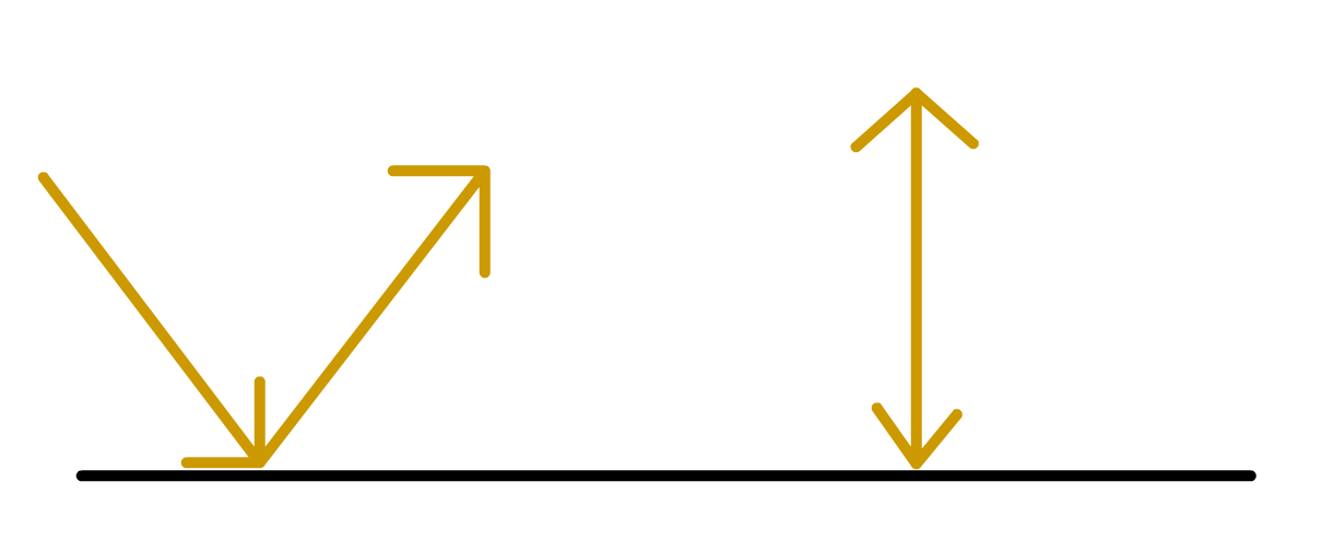 A normal is the angle that is perpendicular to the surface if the object at a given point. Visually this can be seen below were the red line is the normal angle of the back line.